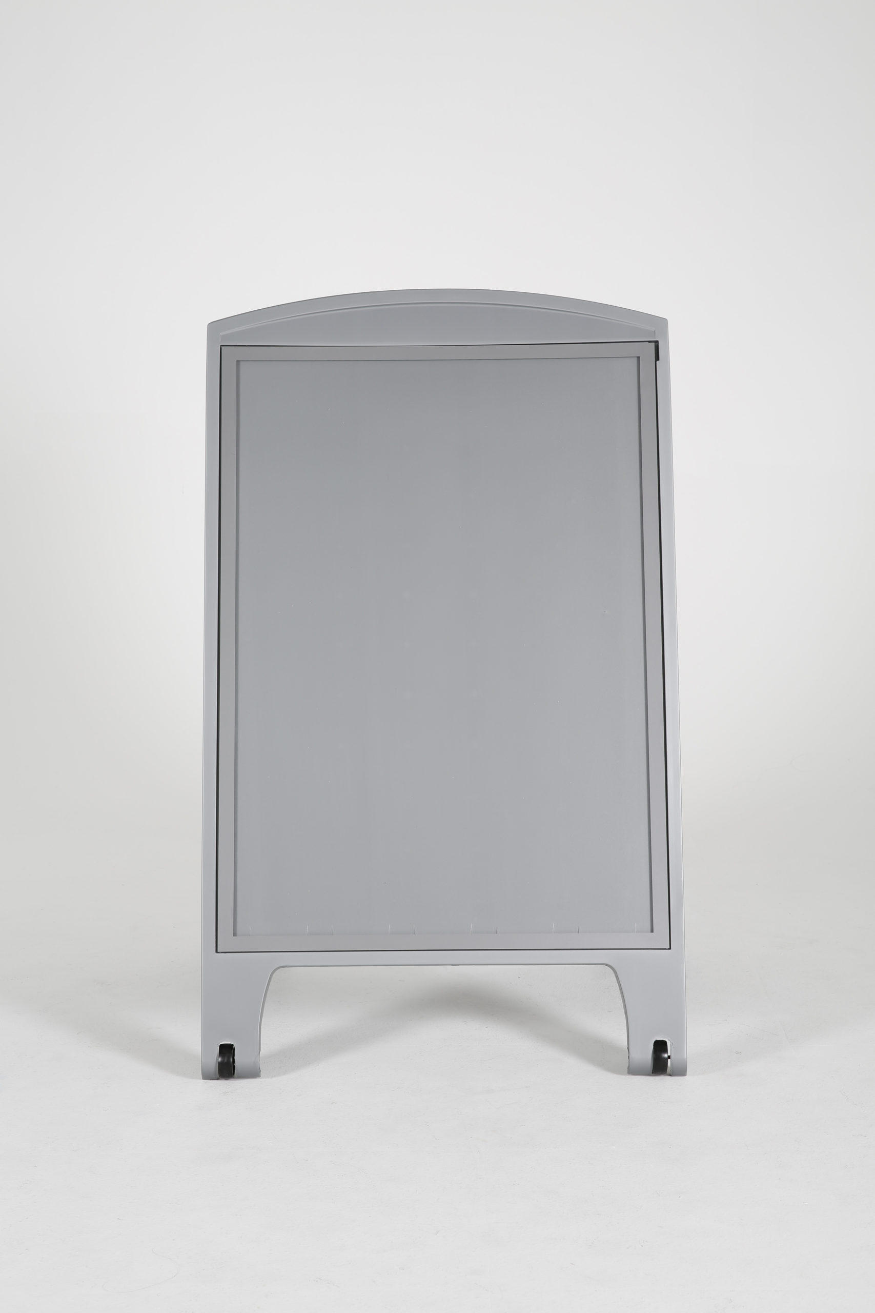 This outdoor a-frame also folds down completely flat, and the handle is recessed when not in use. It’s light enough to pick up and move around but solid enough to stay put in moderate winds. Your posters are protected by transparent screens and you can easily remove your posters by releasing the screens which are locked to prevent tampering.