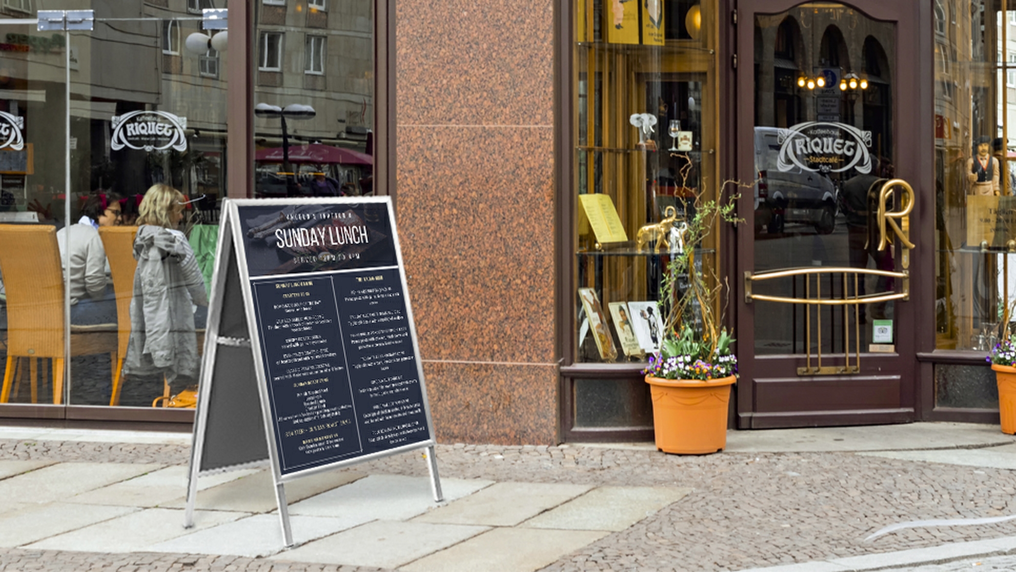 Pavement signs are one of the must-have advertising materials for any restaurant, coffee shop or hotel. Also known as A board signs, they are the main way of driving in customers for many small businesses. At Silverback you can find a wide range of pavement signs, including swinging pavement signs, outdoor chalkboards, forecourt signs, waterbase pavement signs and more, in a variety of sizes to suit your location. A board signs are great for promoting your business by taking advantage of the footfall past your establishment. Whether your business is big or small you’re sure to find the best solution to suit your individual needs. Silverback Visual are leading suppliers in pavement signboards, and outdoor advertising boards with competitive prices, excellent customer service and next-day delivery available.